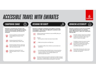 Emirates se aktivně podílí na proměně leteckého průmyslu, aby cestování bylo přístupné a pohodlné pro všechny. V rámci těchto snah založila společnost specializované oddělení pro přístupnost a inkluzi