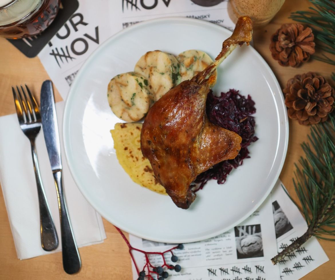 Pokud chystáte větší sešlost, na objednávku vám připraví celou husu s lokšemi a variací knedlíků i zelí. Nezapomeňte si včas udělat rezervaci a oslavte svatého Martina s plnou parádou.
