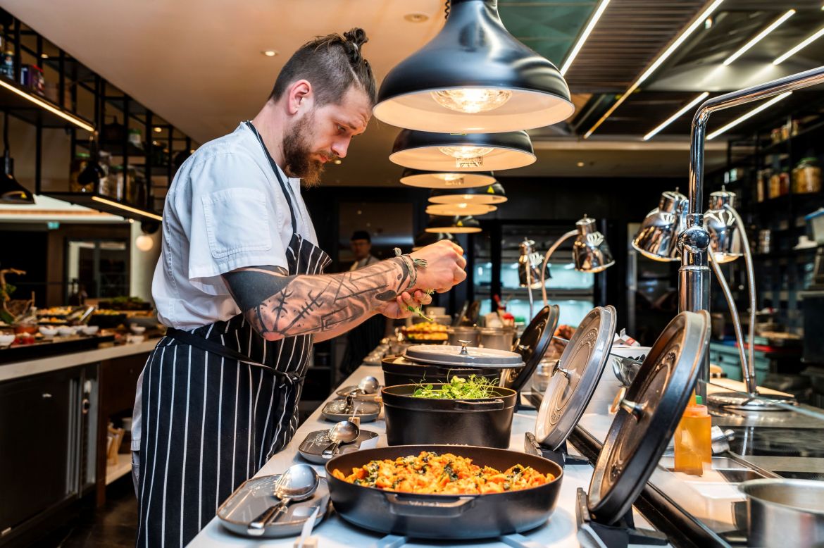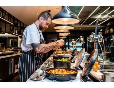 Ten nabídne například pražskou šunku s křenem, špenátovou palačinku s kozím sýrem, králičí rillet, salátový bar nebo tatarákovou stanici. Teplou část doplní risotto s medvědím česnekem připravované naživo, carving stanice s jehněčím kolínkem, speciality z grilu Josper i tradiční pokrmy, jako je králík na slanině či kopřivová nádivka.